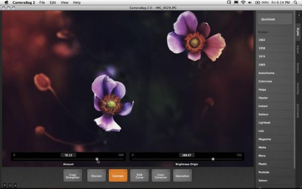 CameraBag es una potente herramienta para lograr los efectos que deseas en todas tus fotografías. El programa ofrece más de 100 estilos y filtros pre-configurados para que puedas lograr una gran variedad de efectos: desde una terminación con película antigua, a retratos de alto contraste, o una reconfiguración más artística.