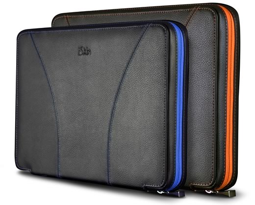 Realizadas en un material similar al cuero, las fundas son negras pero con detalles de colores en los cierres y costuras, para lograr un diseño sobrio pero al mismo tiempo divertido y original. Disponen de un cierre de cremallera de alto rendimiento para poder sacar y reubicar tu notebook cómodamente, y se abre casi completamente para poder hacerlo sin rayar la computadora. El interior está revestido en plush de colores.